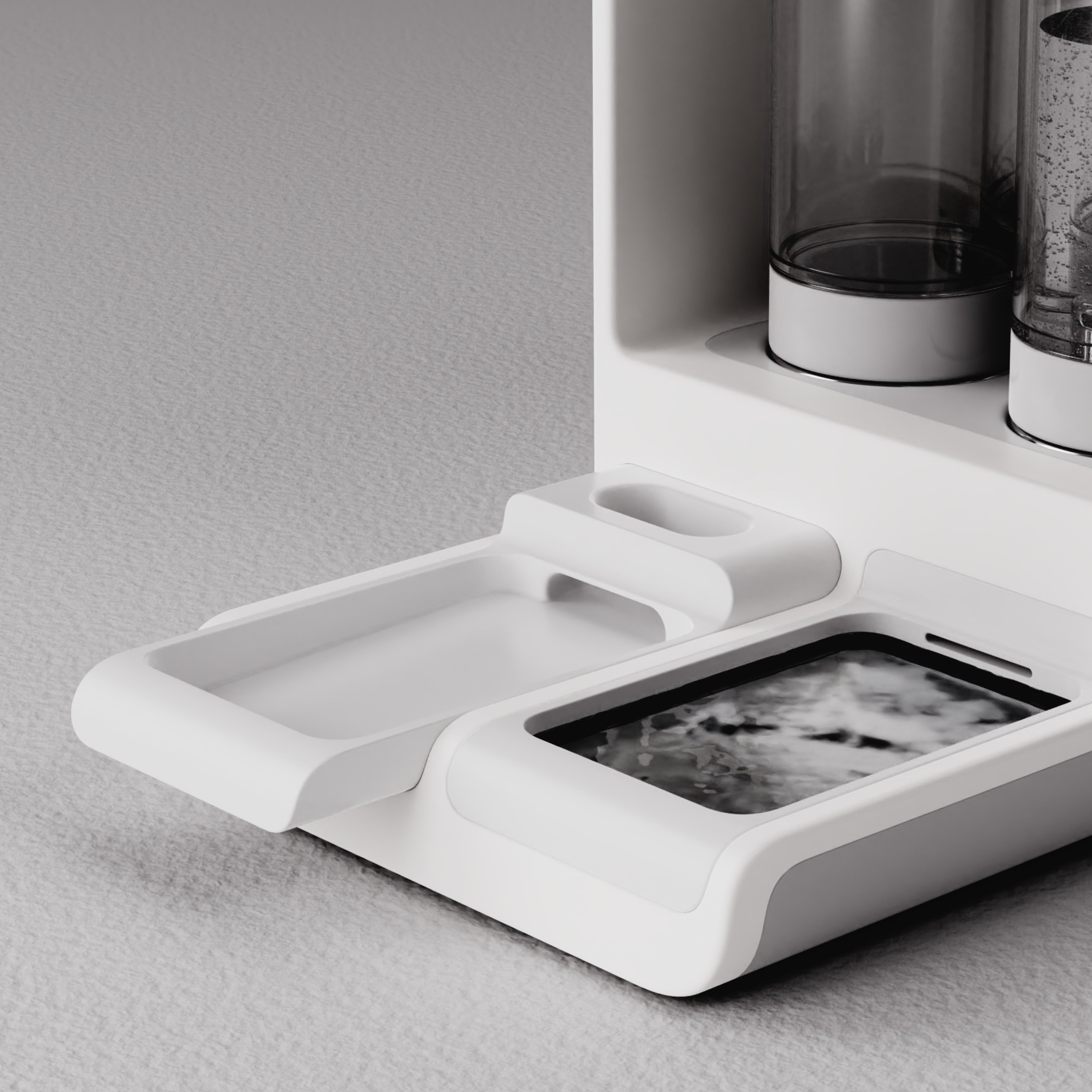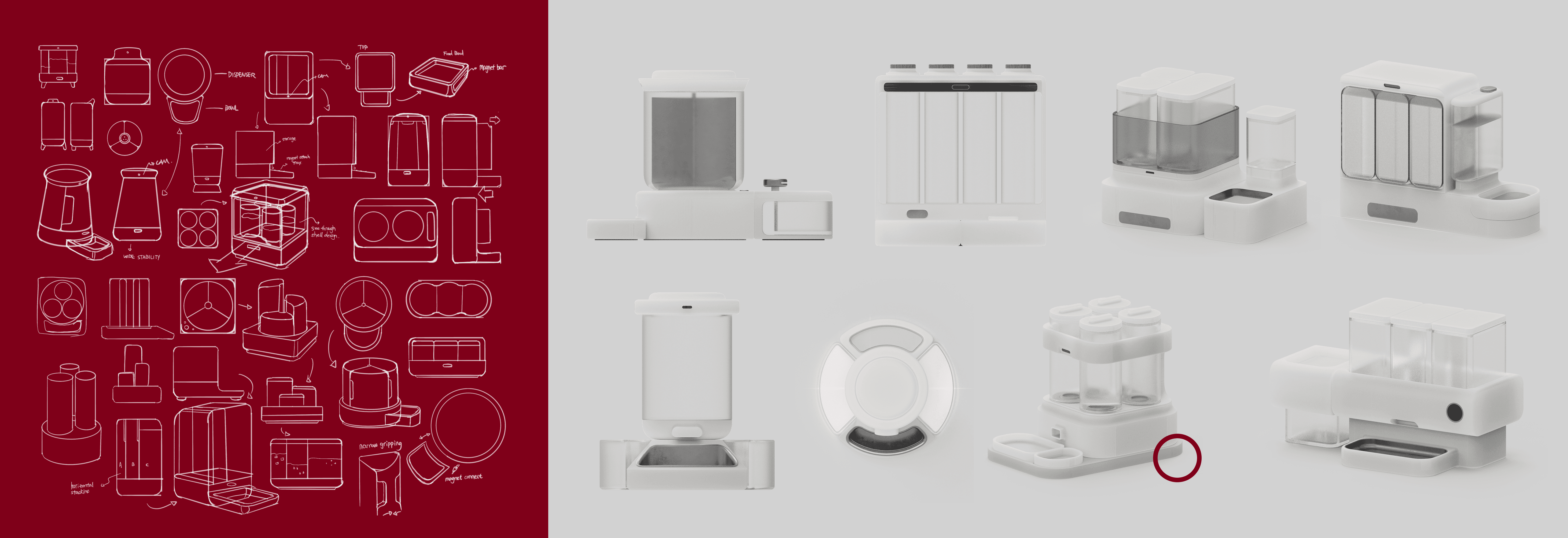 * A speculative design for MUJI that provides "invisible care." This multi-compartment nutrition station empowers thoughtful owners to provide a custom, holistic diet for their pet, turning a messy daily task into a simple, graceful act of love.